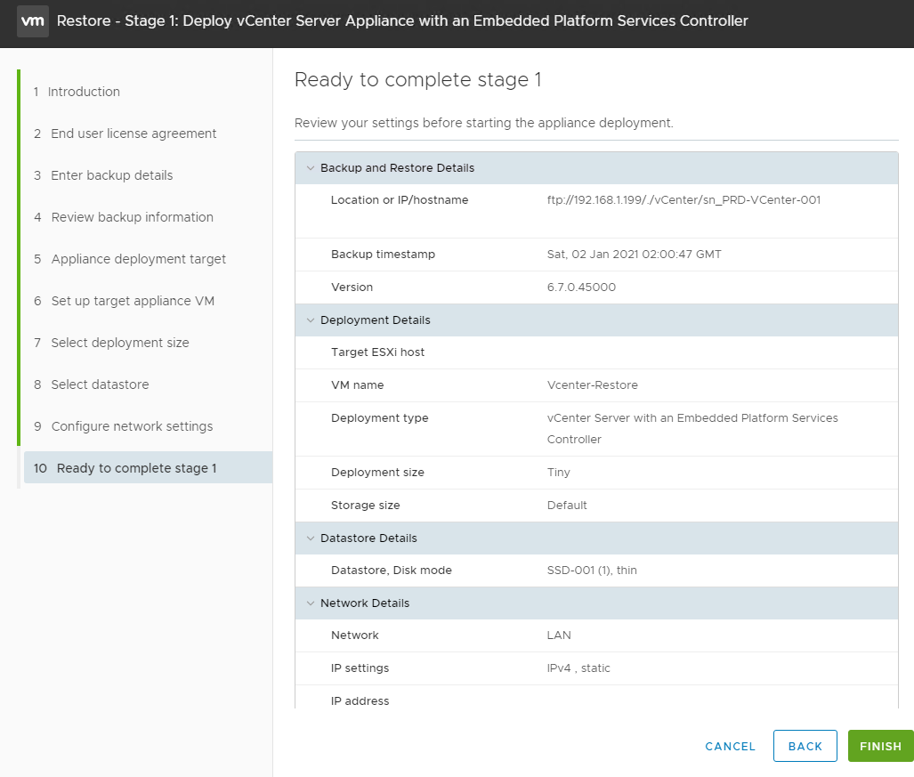 Restore Vcenter 6.7 Appliance