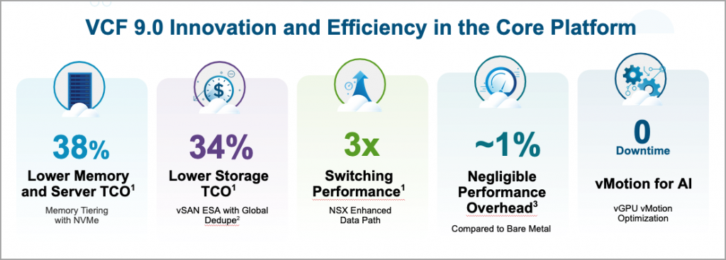 Les statistiques annoncées par VMware sont impressionnantes pour VCF 9.0 :
